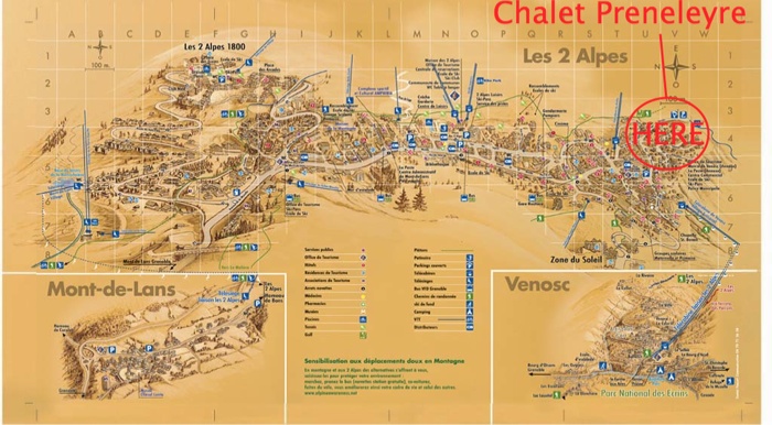 Take the bus from the bus stop "GRENOBLE GARE ROUTIERE" and stop at the terminus "VENOSC LES DEUX ALPES AGENCE VFD". Schedules for the winter are available on this site: transaltitude.fr The chalet is at above 400m from the bus stop.
